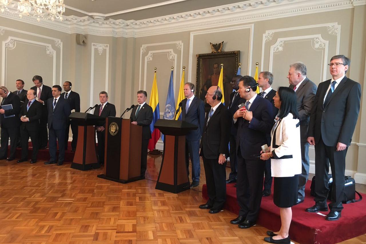 The United Nations Mission in Colombia was established on 26 January 2016 to provide support to the peace process. Its mandate ended on 26 September 2017, and its responsibilities were transferred to the United Nations Verification Mission in Colombia.