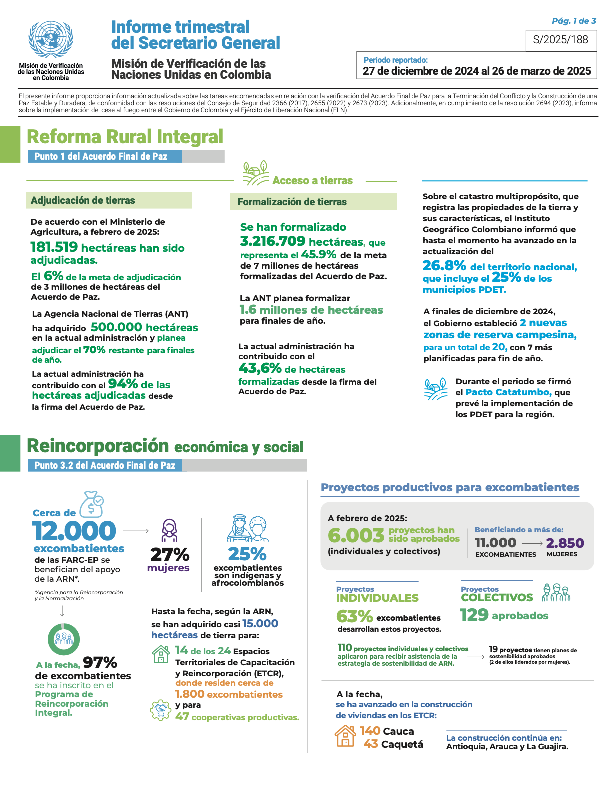 Download official photo Infográficos Infografía - Informe Trimestral del Secretario General sobre la Misión de Verificación en Colombia S/2025/188