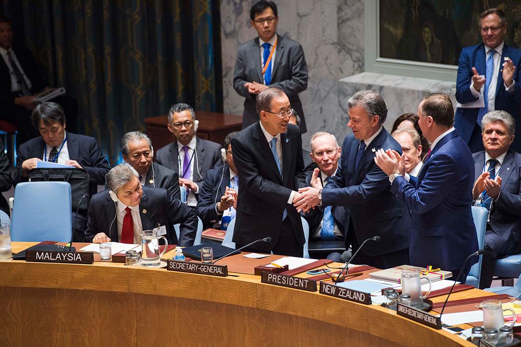 La Misión de las Naciones Unidas en Colombia fue establecida el 26 de enero de 2016 para brindar apoyo al proceso de paz. Su mandato finalizó el 26 de septiembre de 2017, y sus responsabilidades fueron transferidas a la Misión de Verificación de las Naciones Unidas en Colombia.
